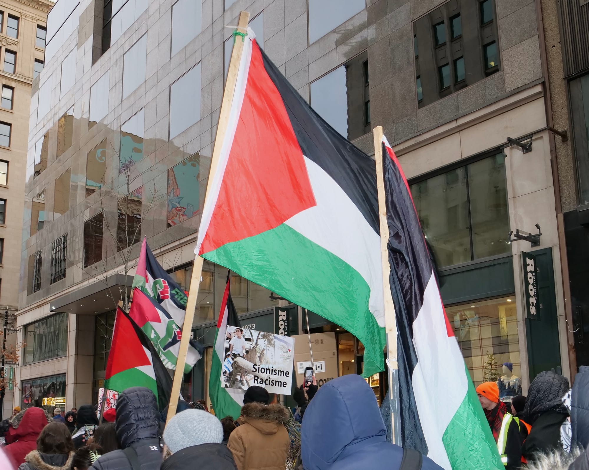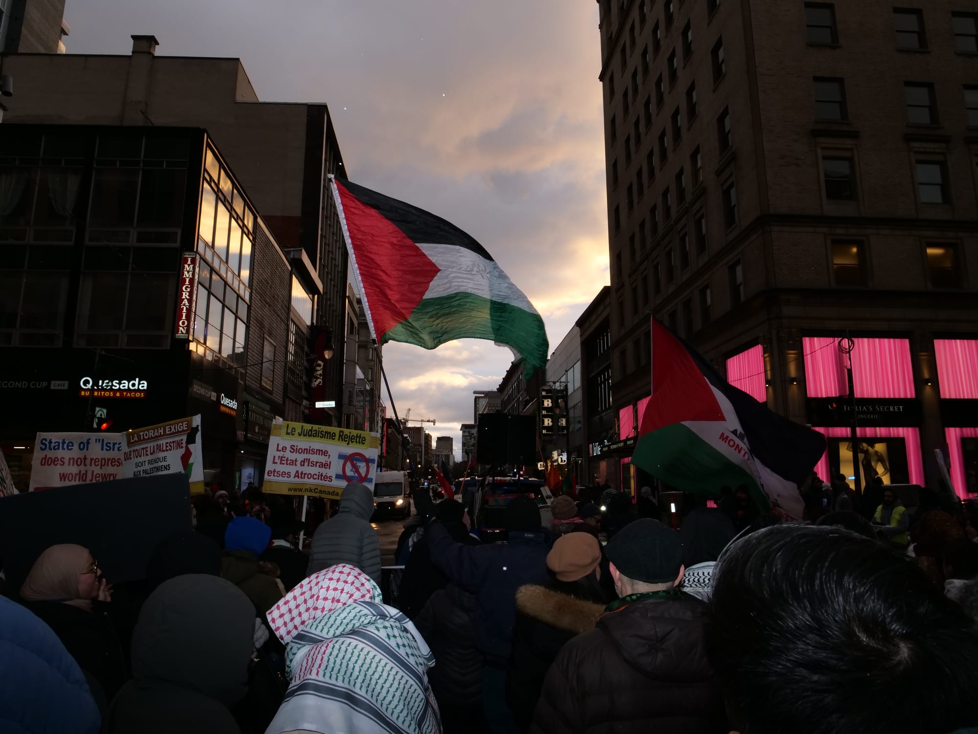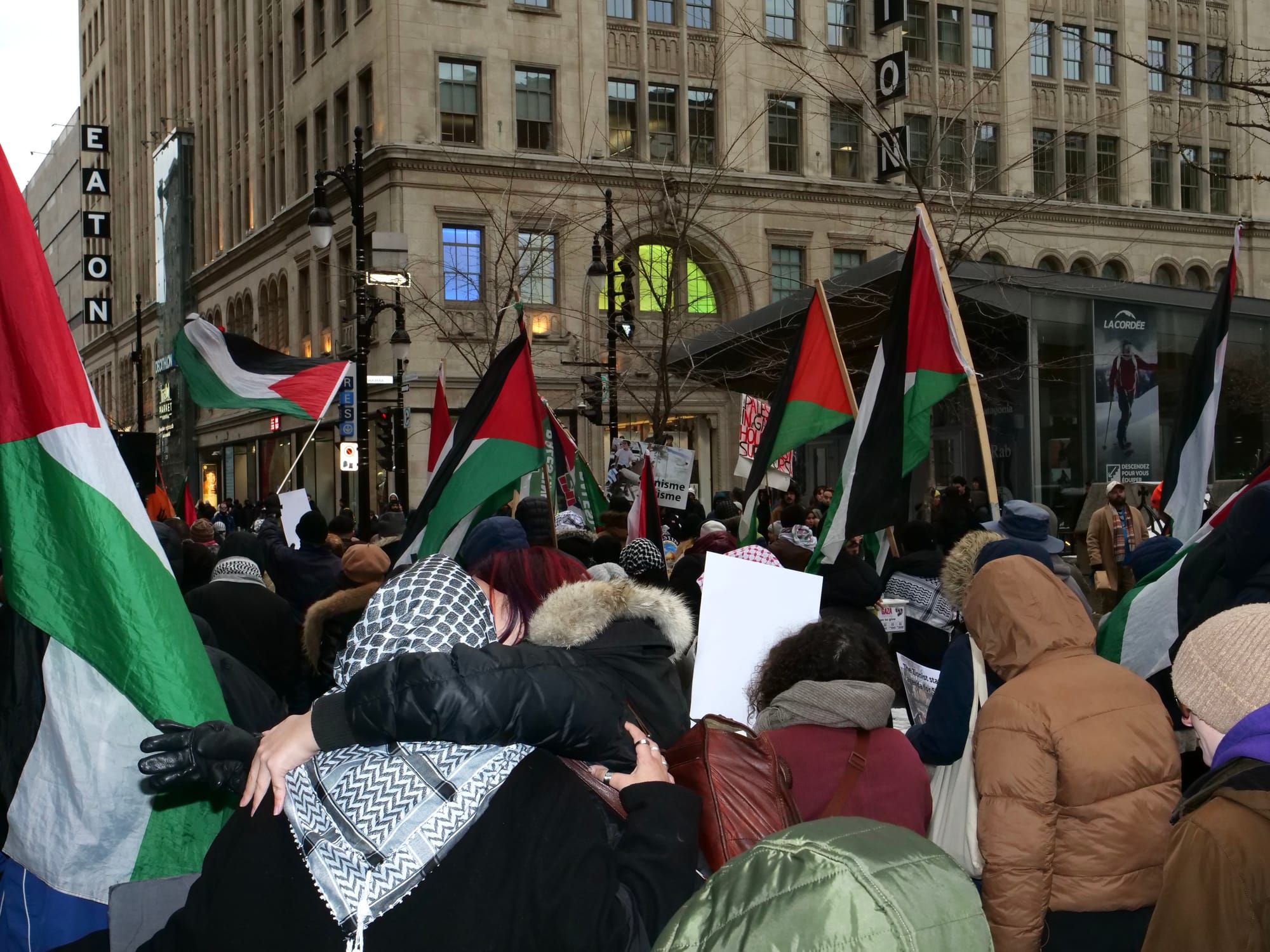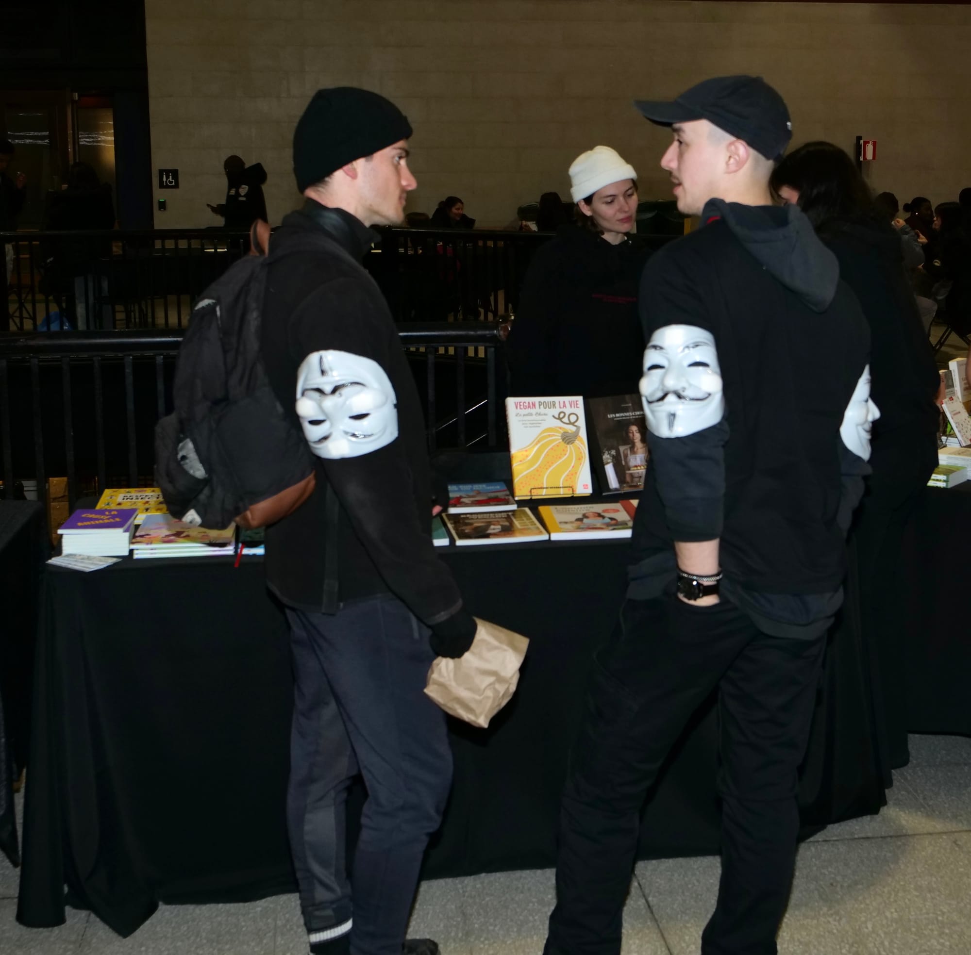 POINTE-CLAIRE, QUEBEC - November 30, 2025: Pro-Palestine Protesters march down Sainte-Catherine Street in Montreal on November 16, 2025. Photo by Russell Tellier/Concordia University VJ Class. POINTE-CLAIRE, QUEBEC - November 30, 2025: Pro-Palestine Protesters march in front of Christ Church Cathedral in Montreal on November 16, 2025. Photo by Russell Tellier/Concordia University VJ Class. POINTE-CLAIRE, QUEBEC - November 30, 2025: Two Pro-Palestine Protesters embrace each other during a march in Montreal on November 16, 2025. Photo by Russell Tellier/Concordia University VJ Class. POINTE-CLAIRE, QUEBEC - November 30, 2025: Pro-Palestine Protesters march down Sainte-Catherine Street in Montreal on November 16, 2025. Photo by Russell Tellier/Concordia University VJ Class. POINTE-CLAIRE, QUEBEC - November 30, 2025: Mya dances with her coworker from EPIK Eats at the Montreal Vegan Festival on November 16, 2025. Photo by Russell Tellier/Concordia University VJ Class.POINTE-CLAIRE, QUEBEC - November 30, 2025: The booth of the vegan company BKIND at the Montreal Vegan Festival on November 16, 2025. Photo by Russell Tellier/Concordia University VJ Class.POINTE-CLAIRE, QUEBEC - November 30, 2025: The EPIK Eats booth at the Montreal Vegan Festival on November 16, 2025. Photo by Russell Tellier/Concordia University VJ Class. POINTE-CLAIRE, QUEBEC - November 30, 2025: Alexandre (left) and Jeff (right) have a conversation at the Montreal Vegan Festival on November 16, 2025. Marguerite (middle) can be seen in the background. Photo by Russell Tellier/Concordia University VJ Class.