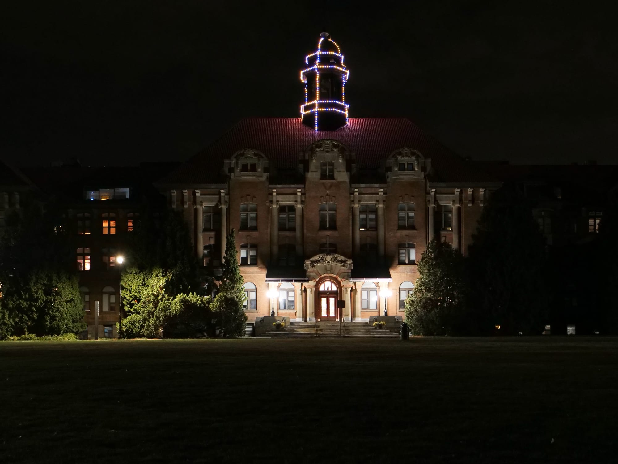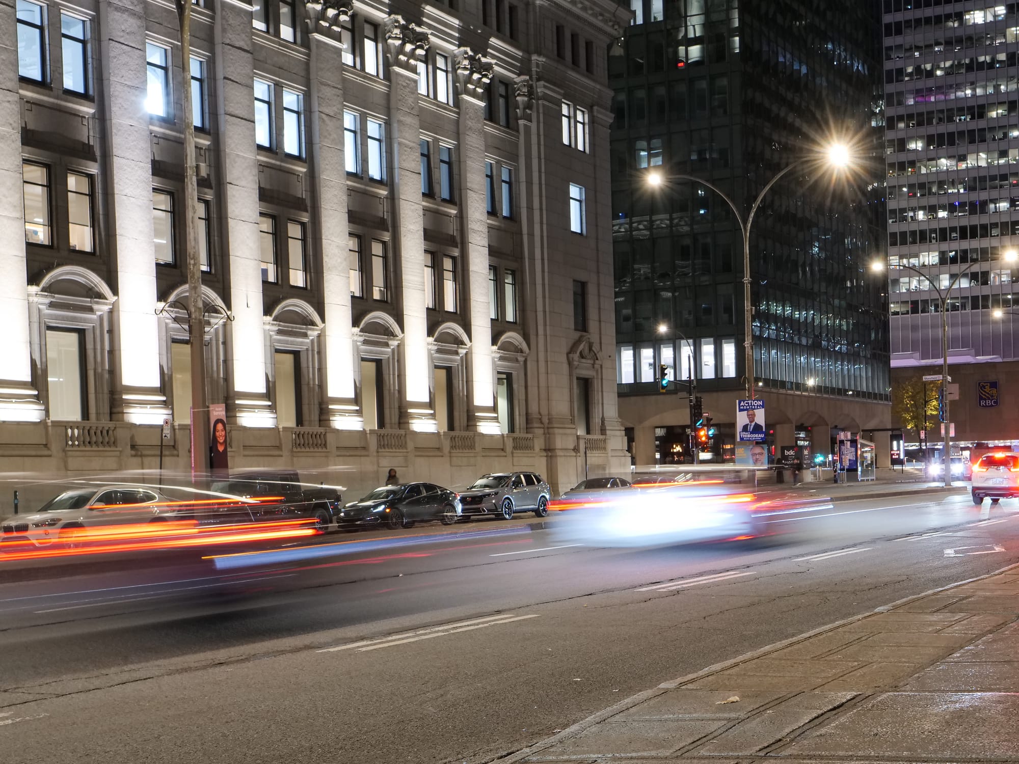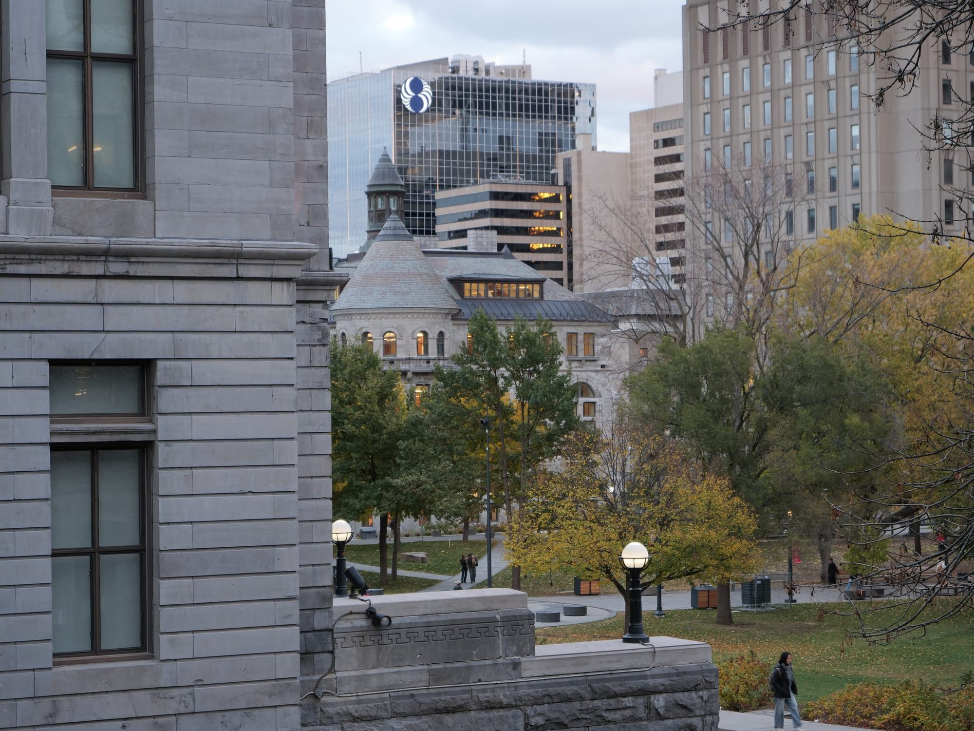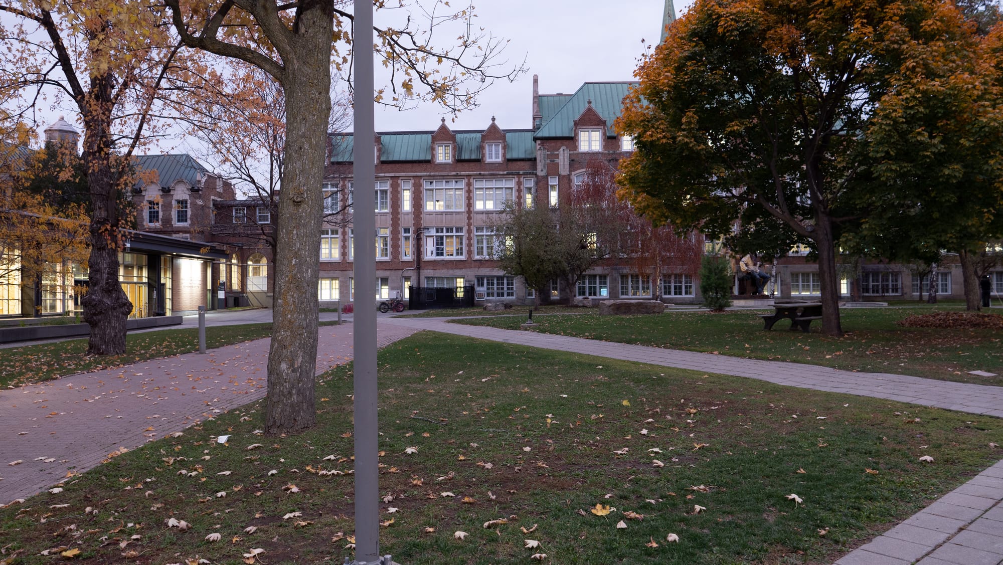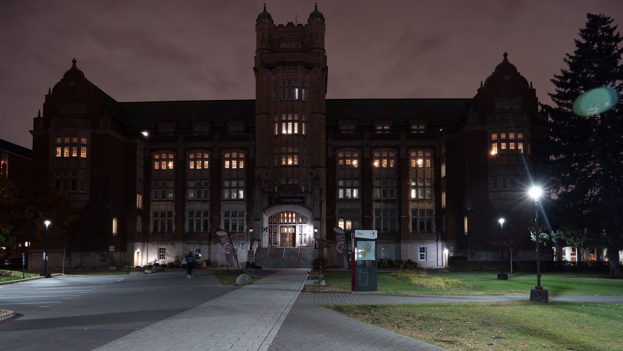 POINTE-CLAIRE, QUEBEC - November 1 2025: The Central Building (centre) and Richard J. Renaud Science Complex (far left) on October 27, 2025, on Concordia University's Loyola campus in Montreal, Quebec. The photo was taken during "the right time of day" when artificial and natural light are equally strong. Photo by Russell Tellier/Concordia University VJ Class.POINTE-CLAIRE, QUEBEC - November 6 2025: People walk on McGill University's campus in downtown Montreal around sunset on November 2, 2025. The photo was taken when artificial and natural light were equally strong. Photo by Russell Tellier/Concordia University VJ Class.POINTE-CLAIRE, QUEBEC - November 6 2025: A student walks in front of the Administrative Building of Concordia University's Loyola Campus in the evening of October 27, 2025. The horizontal and vertical lines of the building are parallel to the edges of the frame. Photo by Russell Tellier/Concordia University VJ Class.POINTE-CLAIRE, QUEBEC - November 6 2025: The Herzberg Building at John Abbott College in Sainte-Anne-De-Bellevue, Quebec, on the night of October 26, 2025. The horizontal and vertical lines of the building are parallel to the edges of the frame. Photo by Russell Tellier/Concordia University VJ Class.POINTE-CLAIRE, QUEBEC - November 6 2025: The corridor connecting the Leacock and Arts Buildings at McGill University in Montreal, Quebec, in the afternoon of November 2, 2025. The horizontal and vertical lines of the building are parallel to the edges of the frame. Photo by Russell Tellier/Concordia University VJ Class.POINTE-CLAIRE, QUEBEC - November 6 2025: Cars drive past McGill University on Sherbrooke Street in Montreal, Quebec, on the night of October 25, 2025. Photo by Russell Tellier/Concordia University VJ Class.POINTE-CLAIRE, QUEBEC - November 6 2025: Cars and pedestrians pass McGill University on Sherbrooke Street in Montreal, Quebec, on October 25, 2025. Photo by Russell Tellier/Concordia University VJ Class.POINTE-CLAIRE, QUEBEC - November 6 2025: Cars drive by the Montreal Museum of Fine Arts on Sherbrooke Street in Montreal, Quebec, on the night of November 2, 2025. Photo by Russell Tellier/Concordia University VJ Class.POINTE-CLAIRE, QUEBEC - November 6 2025: Cars drive on René Lévesque Boulevard past the Sunlife Building on the night of October 25, 2025, in Montreal, Quebec. Photo by Russell Tellier/Concordia University VJ Class.